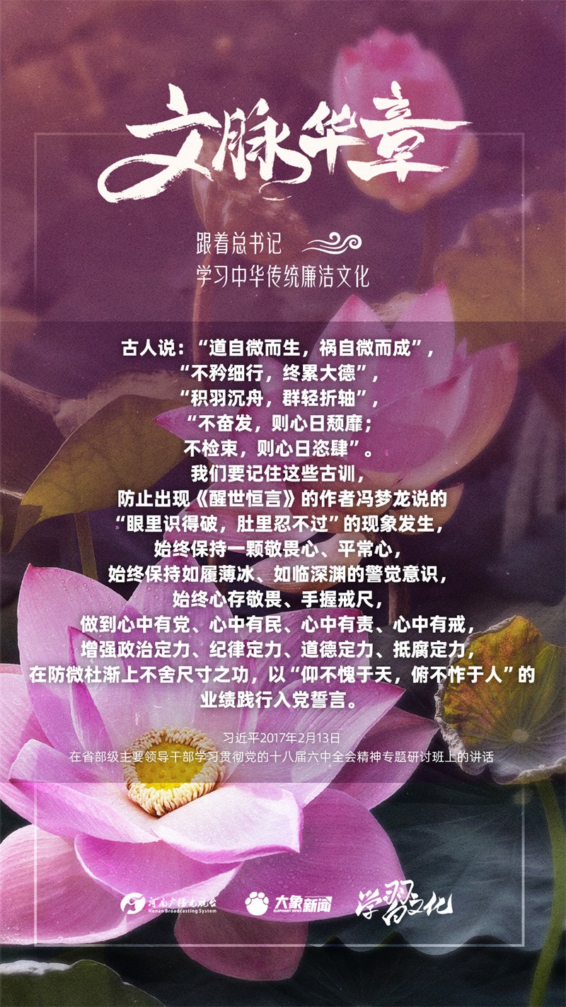 中華優(yōu)秀傳統(tǒng)文化蘊(yùn)含著豐富的廉潔文化,習(xí)近平總書記曾指出:沒有中華優(yōu)秀傳統(tǒng)文化、革命文化、社會主義先進(jìn)文化的底蘊(yùn)和滋養(yǎng),信仰信念就難以深沉而執(zhí)著??倳洺3R?jīng)據(jù)典,教育引導(dǎo)廣大黨員干部正心修身,涵養(yǎng)文化,守住為政之本。讓我們一起跟著總書記學(xué)習(xí)中華傳統(tǒng)廉潔文化。今天推出第三期。