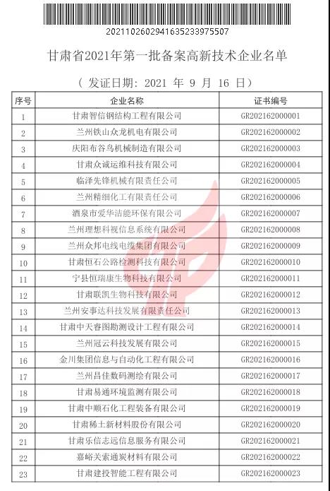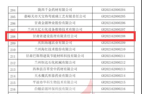 甘肅省水利水電勘測(cè)設(shè)計(jì)研究院有限責(zé)任公司中標(biāo)甘肅省引洮供水二期配套城鄉(xiāng)供水信息化專項(xiàng)工程方案、招標(biāo)設(shè)計(jì)及施工圖設(shè)計(jì)項(xiàng)目;平?jīng)鍪谐缧趴h棗林溝水庫(kù)工程;萬(wàn)州區(qū)魚(yú)背山水庫(kù)大壩安全評(píng)估報(bào)告編制;協(xié)合拉引水樞紐、秋格爾引水樞紐、英爾引水樞紐安全評(píng)價(jià)項(xiàng)目。中標(biāo)蘭州中川機(jī)場(chǎng)三期擴(kuò)建供油工程項(xiàng)目機(jī)坪航站區(qū)工程勘察。甘肅省建設(shè)監(jiān)理有限責(zé)任公司中標(biāo)省政府為民實(shí)事保障性租賃住房項(xiàng)目監(jiān)理。甘肅省建設(shè)監(jiān)理有限責(zé)任公司根據(jù)《高新技術(shù)企業(yè)認(rèn)定管理辦法》和《高新技術(shù)企業(yè)認(rèn)定管理工作指引》有關(guān)規(guī)定,全國(guó)高新技術(shù)企業(yè)認(rèn)定管理工作領(lǐng)導(dǎo)小組辦公室于10月26日正式公布了甘肅省2021年第一批備案的294家高新技術(shù)企業(yè)名單,建設(shè)監(jiān)理公司榜上有名,被評(píng)定為“高新技術(shù)企業(yè)”。
