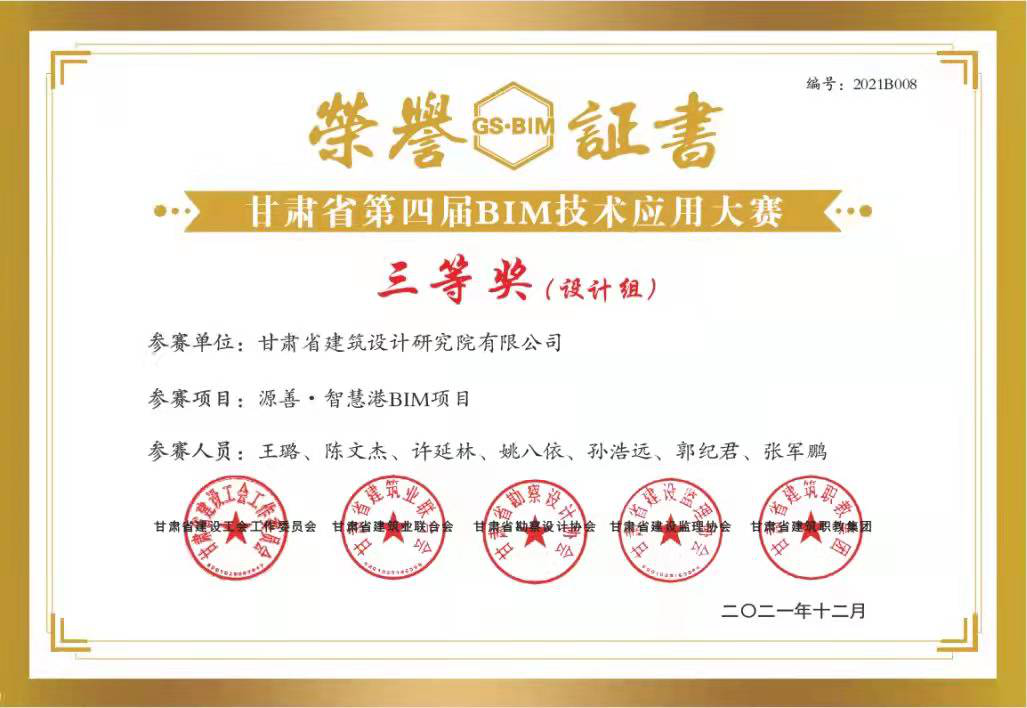 日前,甘肅省建設工會工作委員會、甘肅省建筑業(yè)聯(lián)合會、甘肅省勘察設計協(xié)會、甘肅省建設監(jiān)理協(xié)會、甘肅省建筑職教集團聯(lián)合舉辦的“2021年甘肅省職工職業(yè)技能競賽暨甘肅省第四屆BIM技術應用大賽”評選結果揭曉,甘肅省城鄉(xiāng)規(guī)劃設計研究院有限公司“BIM技術正向設計在蘭州中川國際機場三期擴建工程航站區(qū)附屬用房工程項目中的應用”獲得“BIM技術應用作品征集”比賽設計組一等獎;甘肅省建筑設計研究院有限公司“甘肅省臨洮體育訓練基地二期建設(滑冰館)項目BIM技術在總承包管理中的綜合應用”獲得二等獎,“緣善智慧港BIM項目”獲得三等獎;甘肅省建設監(jiān)理有限責任公司李燕燕獲得“BIM技術技能比賽”三等獎。
