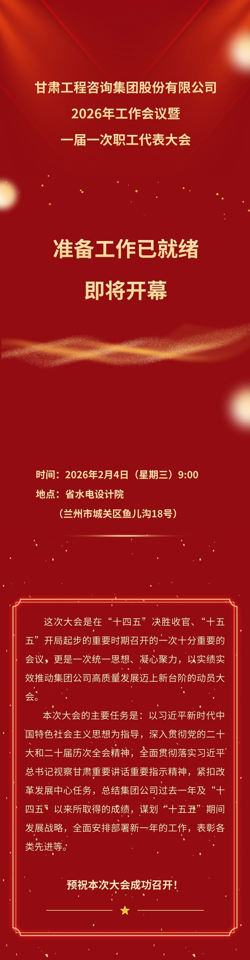 甘肅工程咨詢集團(tuán)股份有限公司2026年工作會(huì)議暨一屆一次職工代表大會(huì)即將召開(kāi)