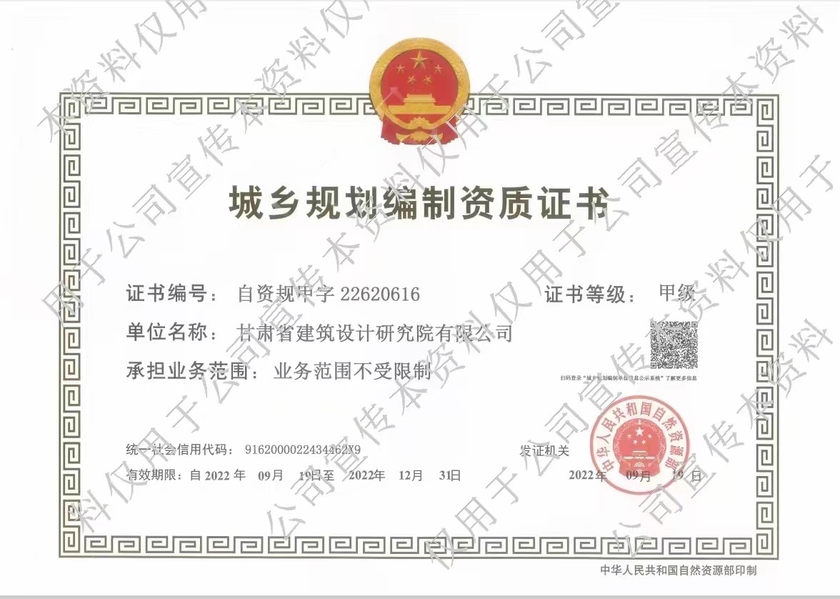 日前,國家自然資源部發(fā)布《自然資源部關(guān)于2022年第六批城鄉(xiāng)規(guī)劃編制單位甲級資質(zhì)認(rèn)定的公告》,甘肅省建筑設(shè)計研究院有限公司名列其中,喜添城鄉(xiāng)規(guī)劃編制甲級資質(zhì)。