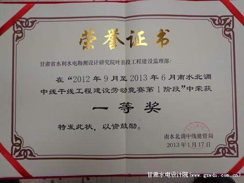 南水北調(diào)中線干線工程建設勞動競賽一等獎