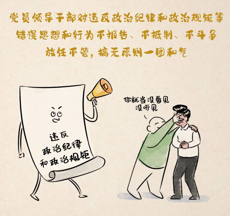 第七十五條 黨員領(lǐng)導(dǎo)干部對違反政治紀(jì)律和政治規(guī)矩等錯誤思想和行為不報告、不抵制、不斗爭,放任不管,搞無原則一團和氣,造成不良影響的,給予警告或者嚴(yán)重警告處分;情節(jié)嚴(yán)重的,給予撤銷黨內(nèi)職務(wù)或者留黨察看處分。