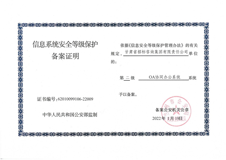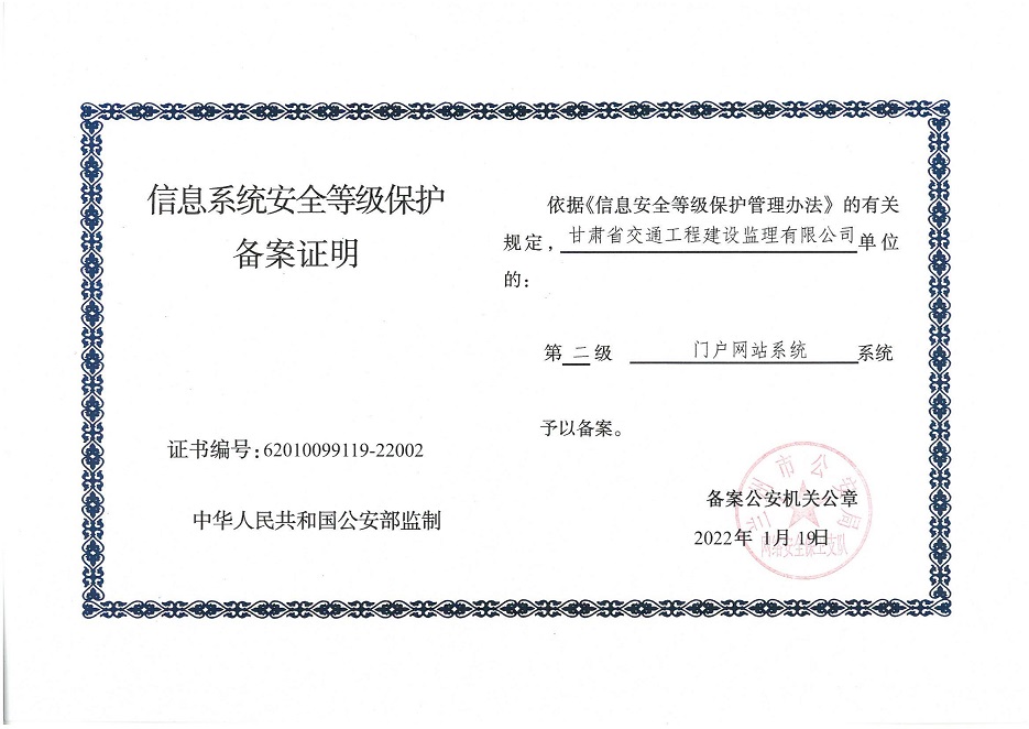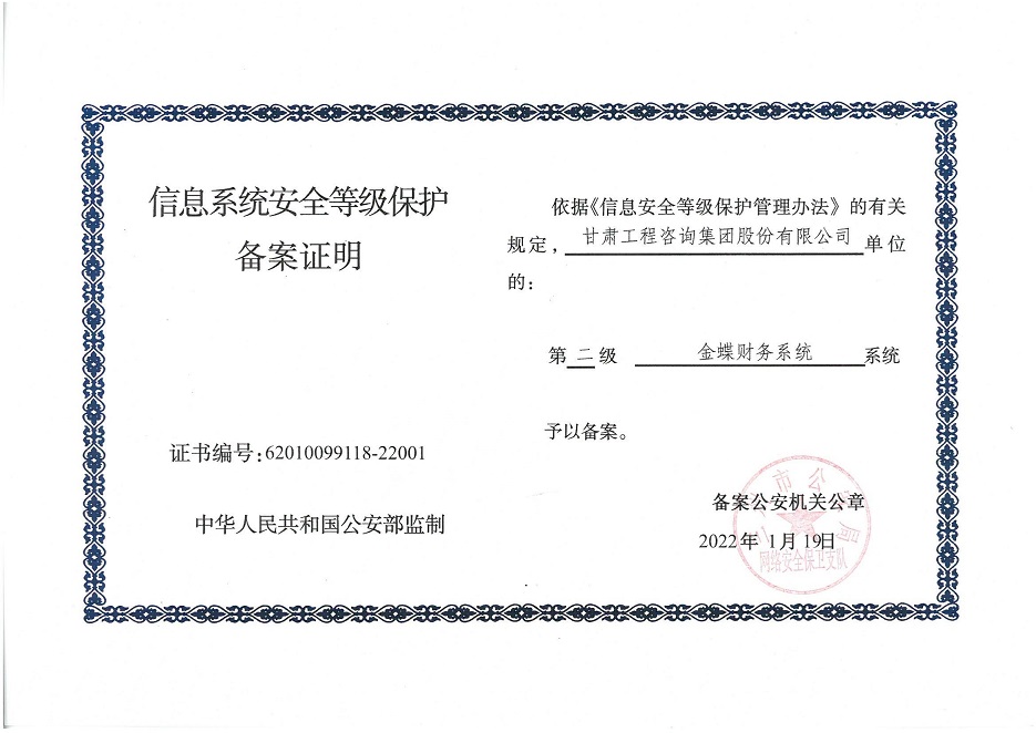自工作開展以來,相關(guān)子公司積極貫徹落實集團公司工作舉措,集團本部、建筑設(shè)計院、水電設(shè)計院、土木工程院、招標咨詢集團、交通監(jiān)理公司合計16個信息系統(tǒng)已順利完成信息系統(tǒng)安全等級保護2.0測評備案工作,并獲得監(jiān)管部門頒發(fā)的《信息系統(tǒng)安全等級保護備案證明》。通過此次等級保護2.0測評工作,集團公司網(wǎng)絡(luò)和重要的信息數(shù)據(jù)系統(tǒng)的安全防護和保障能力得到進一步提升,為推動集團公司數(shù)字化轉(zhuǎn)型工作打下堅實的基礎(chǔ)。