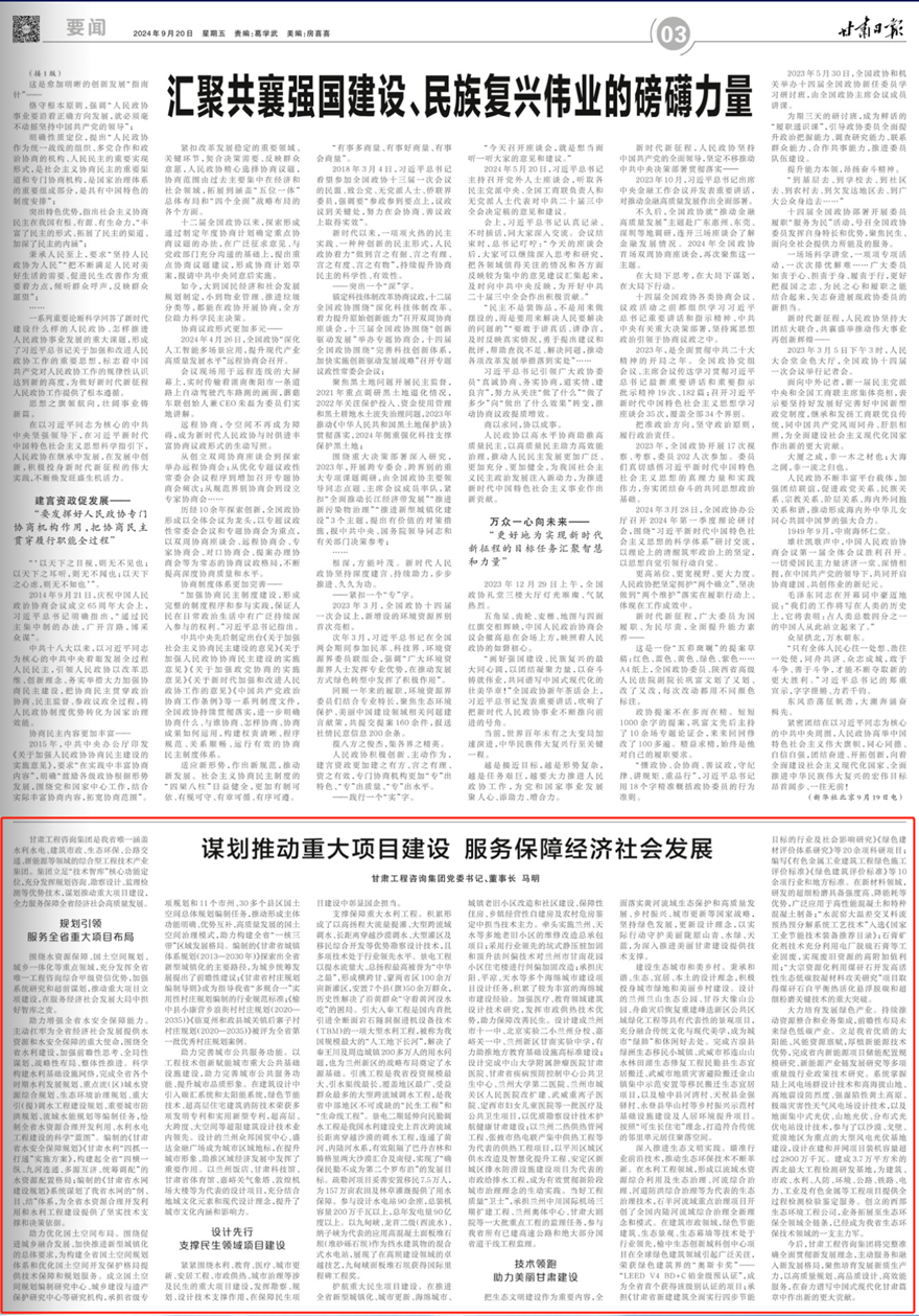 甘肅工程咨詢集團(tuán)黨委書記、董事長馬明:謀劃推動(dòng)重大項(xiàng)目建設(shè) 服務(wù)保障經(jīng)濟(jì)社會(huì)發(fā)展
