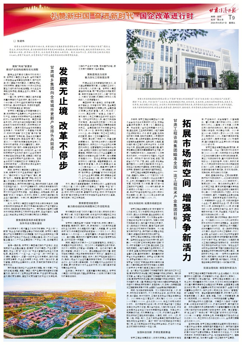 奮進(jìn)新征程,甘肅工程咨詢集團(tuán)將全面貫徹落實黨的二十屆三中全會精神,準(zhǔn)確把握改革重點任務(wù),持續(xù)推動國有企業(yè)做強(qiáng)做優(yōu)做大,著力提升改革質(zhì)量和效能,不斷推進(jìn)黨的建設(shè)與生產(chǎn)經(jīng)營深度融合,聚焦勘察設(shè)計主業(yè),大力發(fā)展綠色技術(shù)、數(shù)字技術(shù)等新興產(chǎn)業(yè),加快培育新質(zhì)生產(chǎn)力,增強(qiáng)高質(zhì)量發(fā)展動能,加快建設(shè)全國一流工程技術(shù)產(chǎn)業(yè)集團(tuán)。