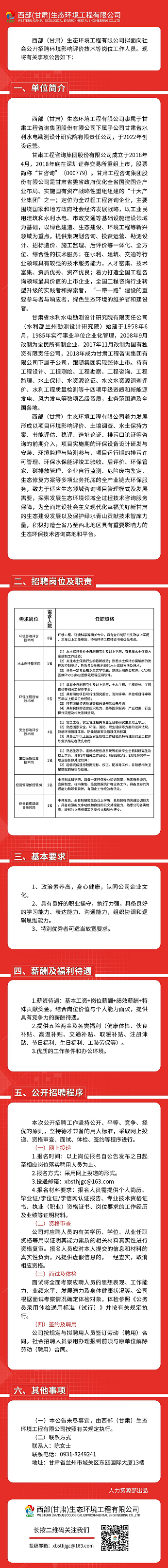 甘肅省水利水電勘測(cè)設(shè)計(jì)研究院有限責(zé)任公司——西部(甘肅)生態(tài)環(huán)境工程有限公司招聘公告