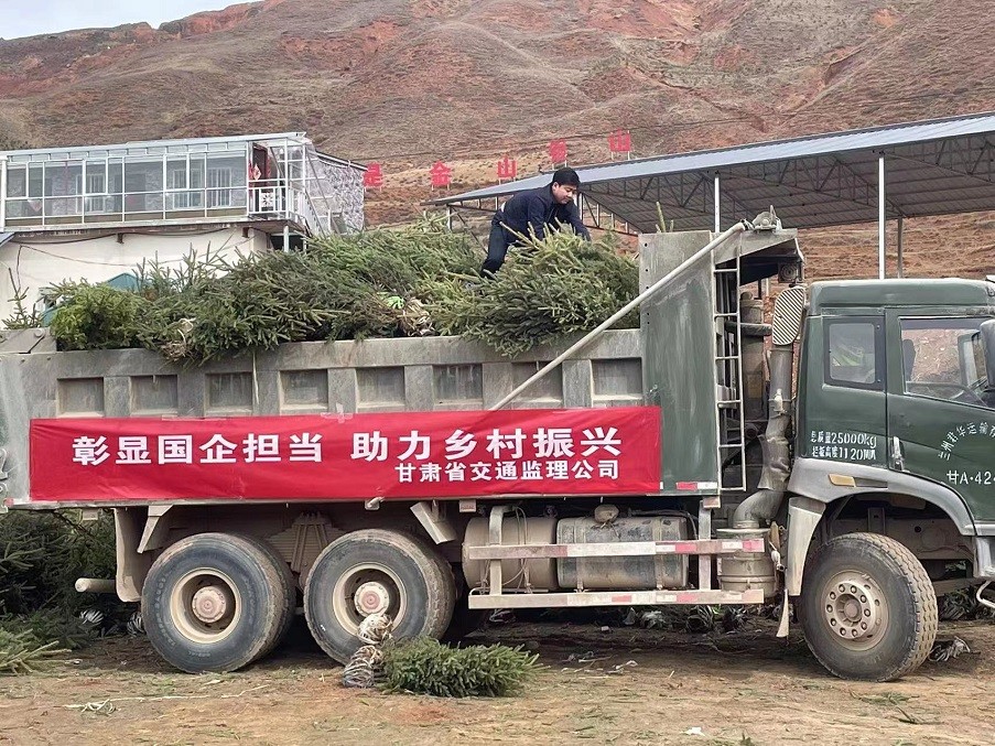植樹現(xiàn)場(chǎng),黨旗招展,有的揮鍬鏟土,有的扶樹填坑,有的澆水灌根,大家分工合作,默契配合,干勁十足,認(rèn)真完成每一道工序。在大家的共同努力下,由交通監(jiān)理公司運(yùn)送的800余棵云杉樹苗迎風(fēng)挺立,為馬旦溝村再添一抹新綠。