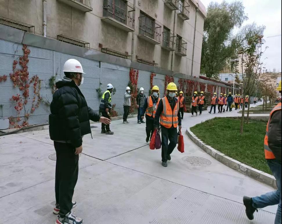 10月28日晚8點,建設監(jiān)理公司第三事業(yè)部蘭州奧體中心項目監(jiān)理人員像往常一樣結束工作剛回到家中,就在這時,接到次日清晨要對居住小區(qū)進行封閉管理的緊急通知,第三事業(yè)部經(jīng)理孫玉杰第一時間向有關領導匯報情況,并與總工李春龍商量對策,最后他們決定,絕不能因為監(jiān)理人員不能到崗而影響蘭州奧體中心項目建設。要緊關頭,李春龍連夜組織項目監(jiān)理組成員召開了緊急會議,對疫情防控期間項目監(jiān)理工作作了具體安排部署,隨后與項目組監(jiān)理人員寧韶鋒、陳鵬如、劉思誠、閆立學、王碧6人于當晚立即返回施工項目現(xiàn)場,因住宿條件受限未能同行前往的另一名項目組女同志王紅霞也于次日一大早出發(fā)到達項目現(xiàn)場。