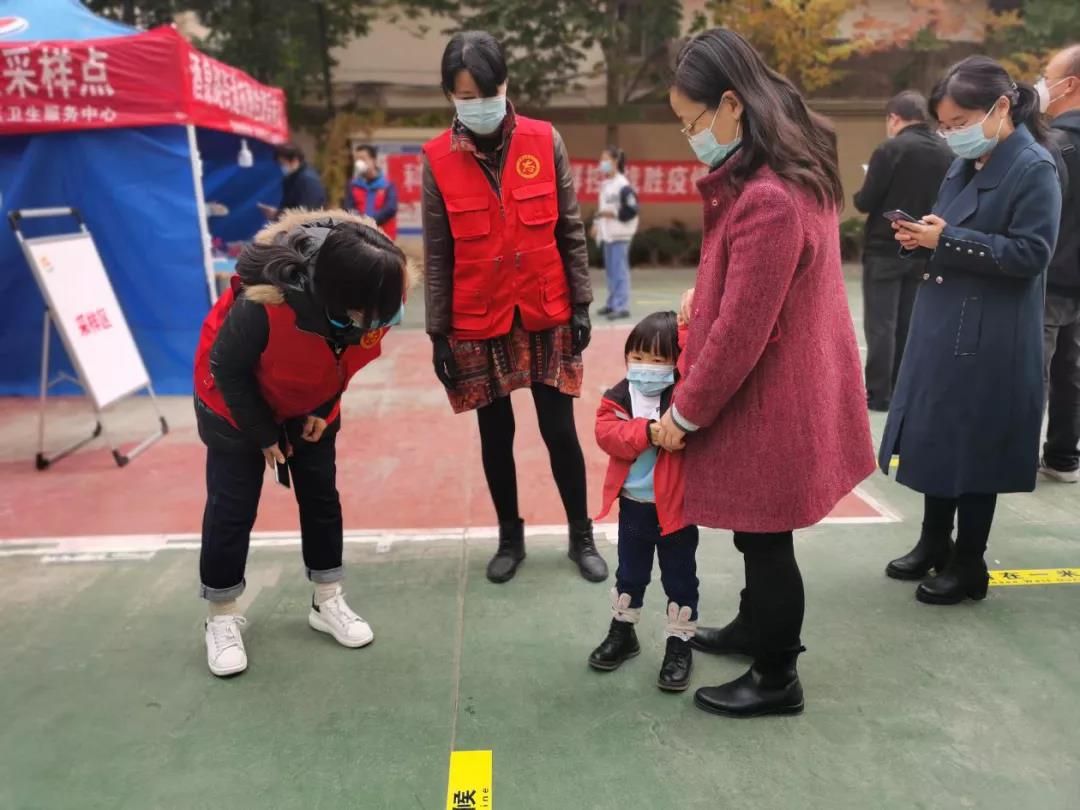 號令一出,不到半個小時時間,300多人的志愿隊伍已組建就緒。當(dāng)天下午,第一批志愿者隊伍,統(tǒng)一身穿紅馬甲,佩戴口罩,迅速奔赴南關(guān)夜市、伊真大廈、五泉街道、外國語中學(xué)等多個檢測點開展志愿服務(wù)。而女志愿服務(wù)者則更成為了深秋季節(jié)疫情防控一線最靚麗的一道風(fēng)景?!澳茫?zhí)嵩绱蜷_微信健康出行碼”“請大家不要扎堆聚集,按照1米線要求,有序排隊”“請黃碼人員、老人、孕婦和小孩走綠色通道”……一聲聲溫馨提示,一次次貼心攙扶,都是她們最溫情的守護。