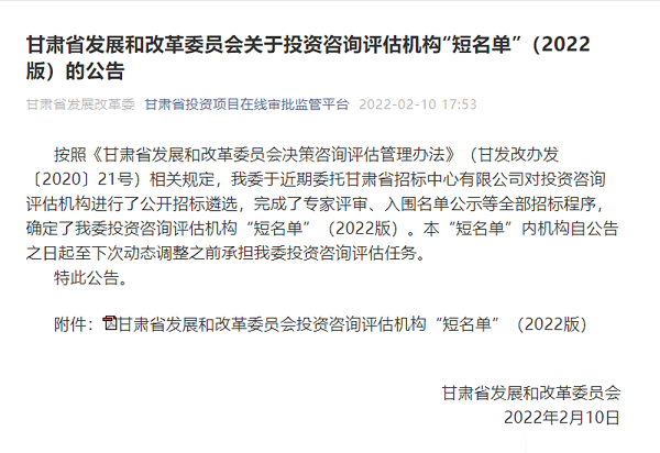成功入圍省發(fā)改委三個行業(yè)板塊投資咨詢評估機(jī)構(gòu)“短名單”