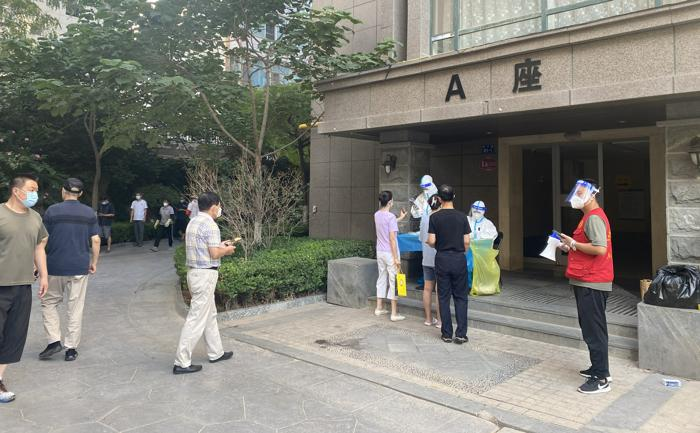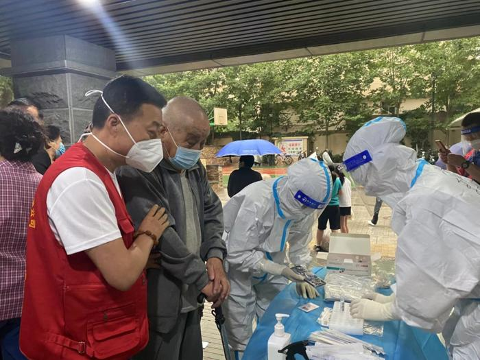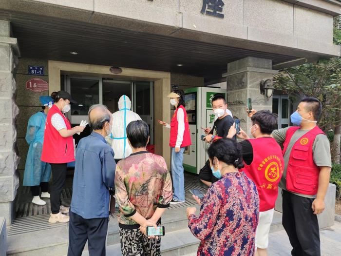 盛元小區(qū)一共有5個單元,500多戶,2000多人;新港城小區(qū)屬于城關(guān)區(qū)比較大的居民小區(qū),分為ABCDE五個區(qū),共有300多個單元,5200多戶,16000多人居住。面對這些情況,陳萬國、李朋袀和白萬景等志愿者沖在前面,維持檢測秩序,布置核酸檢測點(diǎn)位,分發(fā)甘肅抗疫中藥包,投放樓棟垃圾,匯總登記問題并與社區(qū)和醫(yī)務(wù)人員溝通逐一解決。接受核酸檢測的隊(duì)伍中,有上至八九十歲的老人,下至三四歲的孩童,還有行動不便的病人,他們總是無微不至,耐心引導(dǎo),尤其在遇到一些行動不便的老人和病人時,他們主動上前攙扶,把貼心的溫暖送給每一名群眾。