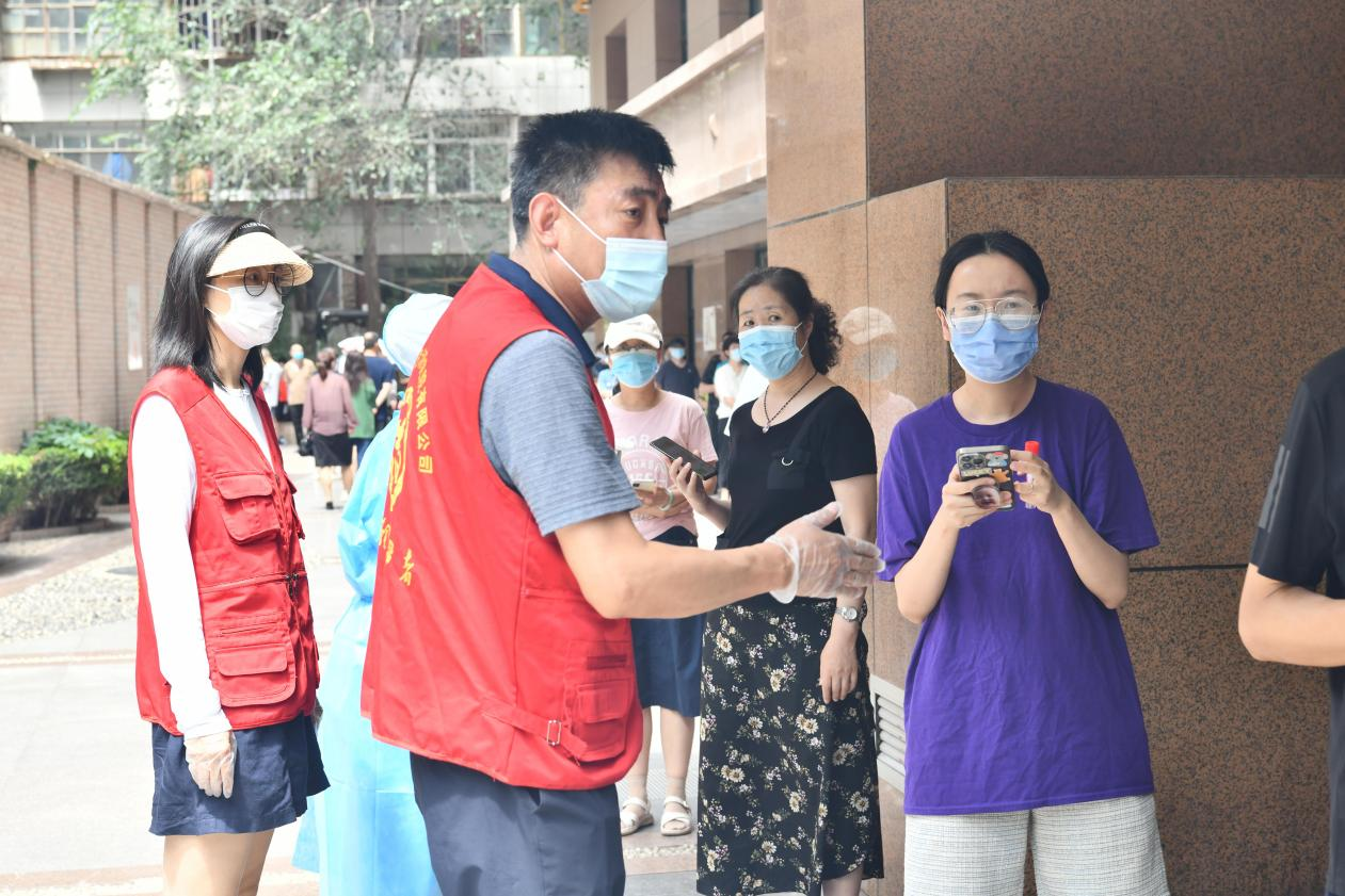 中午時分,志愿者們頂著38℃的高溫,穿梭在小區(qū)核酸檢測采集現(xiàn)場、小區(qū)出入口,按照核酸檢測要求,引導待測人員佩戴好口罩、保持安全距離、有序排隊。他們嗓子啞了也顧不上喝一口水,身上的衣服已不知被汗水浸濕了多少次,卻始終沒有一個人叫苦叫累,依然努力奮戰(zhàn)在核酸采樣第一線,用實際行動展示“奉獻、友愛、互助、進步”的志愿精神,詮釋國企擔當。