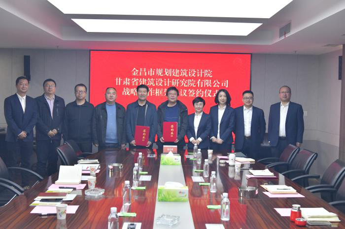 11月7日,省建筑設(shè)計(jì)院與金昌市規(guī)劃建筑設(shè)計(jì)院戰(zhàn)略合作協(xié)議簽訂儀式在蘭州舉行。金昌市規(guī)劃建筑設(shè)計(jì)院董事長(zhǎng)魯?shù)糜?、副總?jīng)理王鋒輝和省建筑設(shè)計(jì)院黨委副書(shū)記、總經(jīng)理周文新,副總經(jīng)理王璐參加簽約儀式。