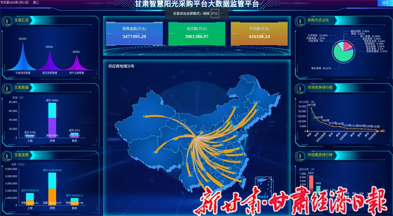 2025年,由甘肅省招標(biāo)咨詢(xún)集團(tuán)有限責(zé)任公司(以下簡(jiǎn)稱(chēng)“省招標(biāo)集團(tuán)”)傾力打造并運(yùn)營(yíng)的甘肅智慧陽(yáng)光采購(gòu)平臺(tái)(以下簡(jiǎn)稱(chēng)“平臺(tái)”),在甘肅工程咨詢(xún)集團(tuán)的大力支持下,緊扣陽(yáng)光采購(gòu)生態(tài)體系建設(shè)核心目標(biāo),嚴(yán)格落實(shí)省政府國(guó)資委工作要求,以數(shù)智化轉(zhuǎn)型為引擎,持續(xù)優(yōu)化服務(wù)體系、擴(kuò)大市場(chǎng)覆蓋,成功實(shí)現(xiàn)從國(guó)資國(guó)企局部服務(wù)向全省覆蓋的延伸。全年各項(xiàng)運(yùn)營(yíng)指標(biāo)跨越式增長(zhǎng)、成效卓著,在規(guī)范采購(gòu)流程、賦能?chē)?guó)企轉(zhuǎn)型、優(yōu)化營(yíng)商環(huán)境等方面發(fā)揮關(guān)鍵作用,為甘肅經(jīng)濟(jì)高質(zhì)量發(fā)展注入強(qiáng)勁動(dòng)能。