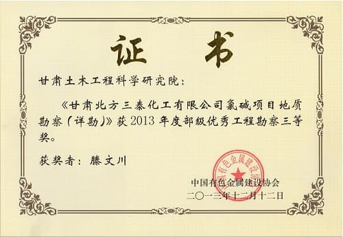優(yōu)秀工程勘察三等獎(jiǎng)