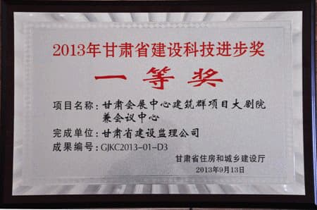 2013年甘肅省建設科技進步獎一等獎